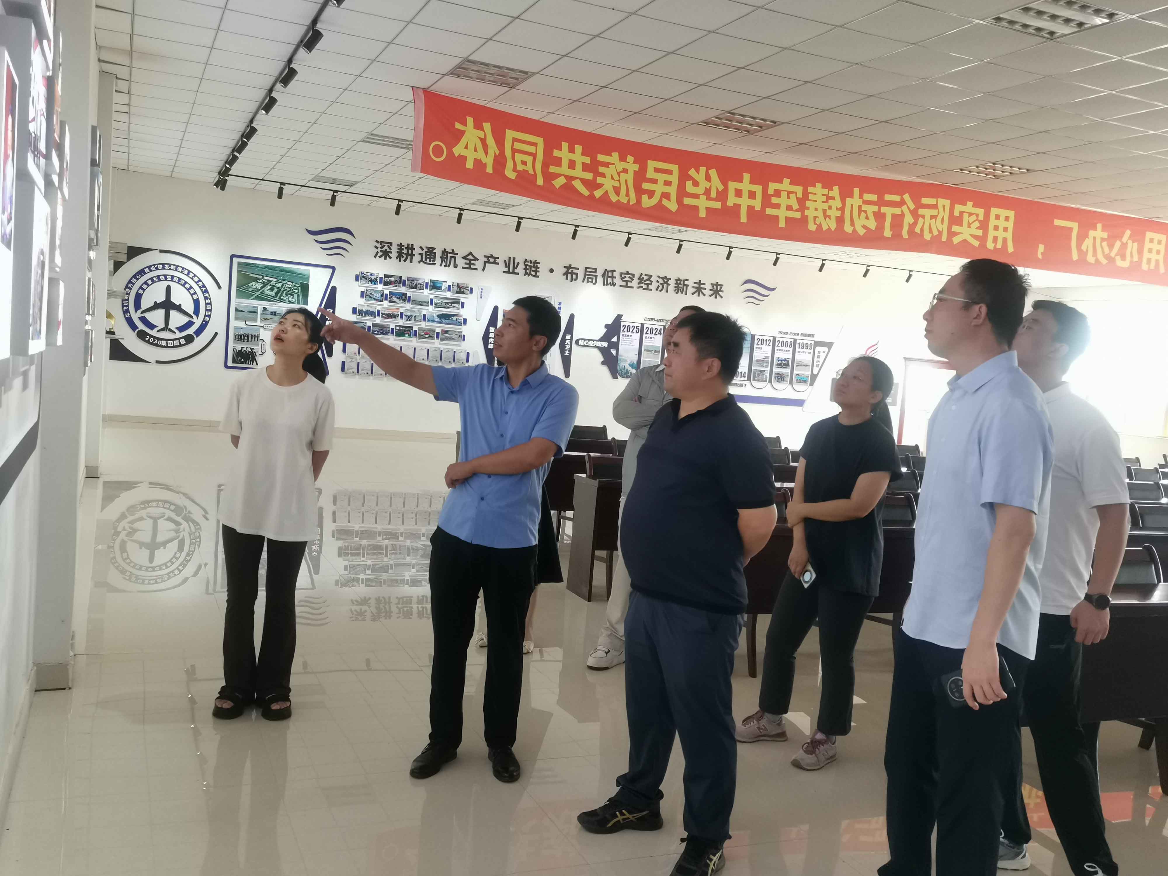 調(diào)研期間,調(diào)研組一行實(shí)地走訪了企業(yè)飛機(jī)展廳,重點(diǎn)聽取了關(guān)于 “云天 300” 無人機(jī)在農(nóng)業(yè)植保、人工物流、應(yīng)急救援等領(lǐng)域的技術(shù)性能優(yōu)勢及研發(fā)技術(shù)突破的詳細(xì)匯報(bào),直觀了解了該機(jī)型的應(yīng)用場景與市場潛力。在企業(yè)文化展廳,調(diào)研組通過參觀文化墻、觀看宣傳片等方式,深入梳理了公司的發(fā)展歷程、核心技術(shù)積累及未來產(chǎn)業(yè)規(guī)劃布局。
