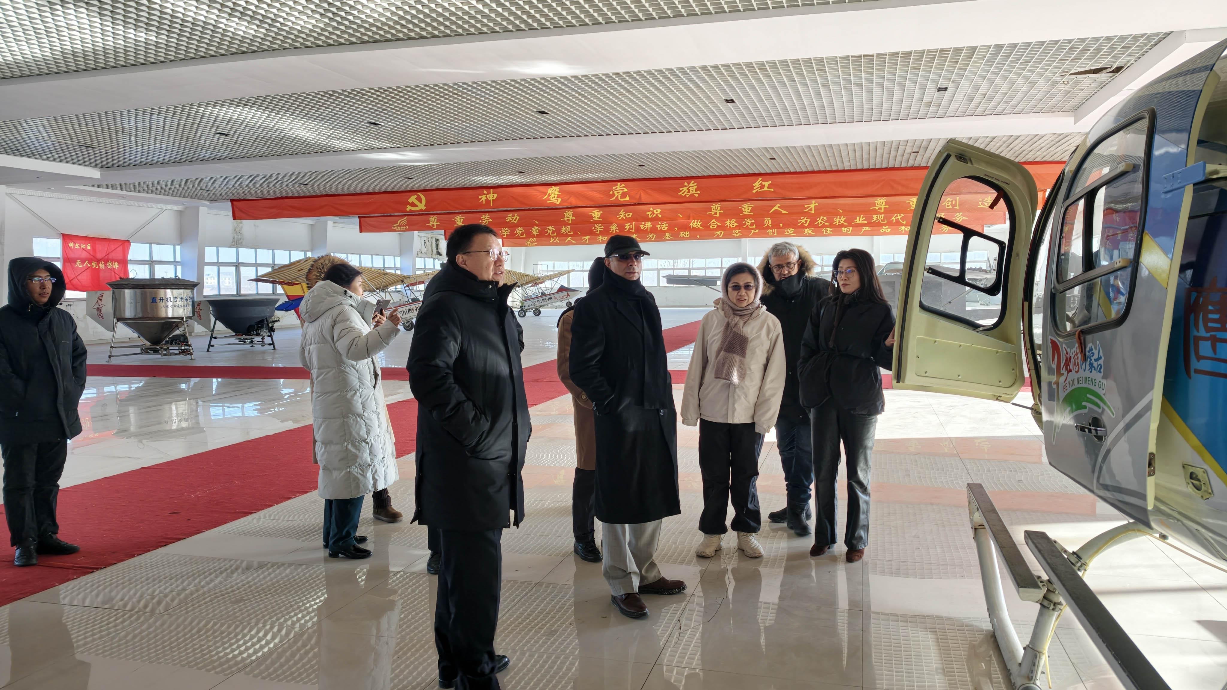 當天上午,納辛航空董事長阿巴西?阿米尼一行到訪內(nèi)蒙古神鷹航空集團總部。在神鷹航空集團董事長邱志剛、總經(jīng)理孫學慧及公司核心管理人員的陪同下,參觀了公司飛機展廳與文化墻,并觀看了企業(yè)宣傳片,深入了解神鷹航空的發(fā)展歷程、企業(yè)實力與業(yè)務布局。