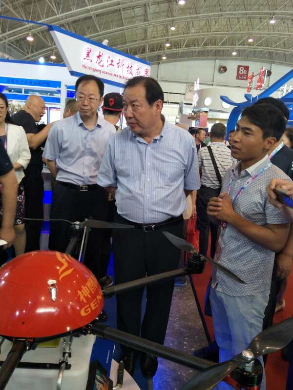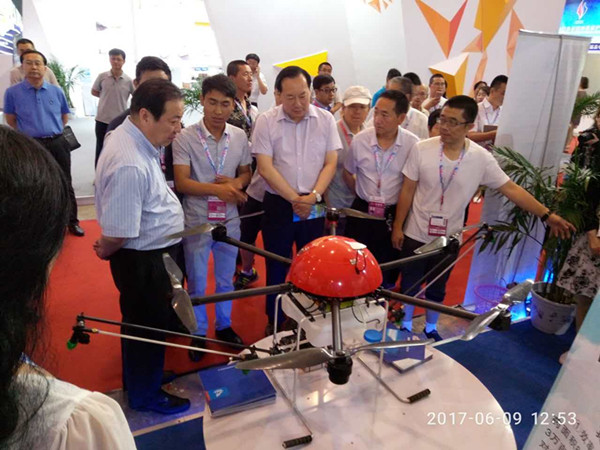 自治區(qū)副主席白向群蒞臨展會,參觀公司參展的植保無人飛機。
